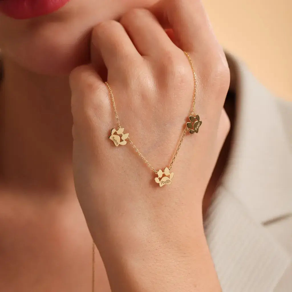 Unsere Haustiere sind uns wichtig, auch wenn wir sie nicht immer überallhin mitnehmen können. Mit unserer Pfoten-Namenskette trägst du dein Haustier immer bei dir – ein wunderschönes Geschenk für Tierliebhaber oder für dich selbst.