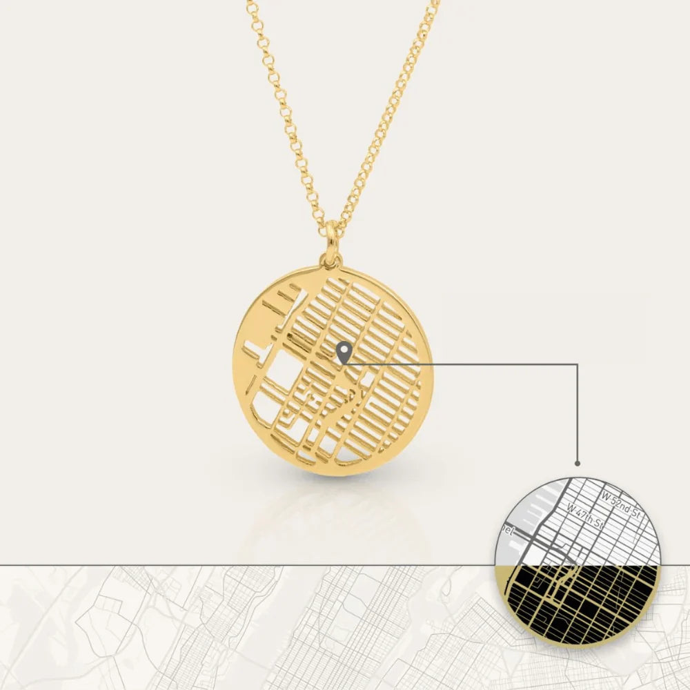 Verwandle deinen Lieblingsort in eine wunderschöne Halskette! Egal, ob es der Ort ist, an dem ihr euch kennengelernt habt, gereist seid oder deine Heimatstadt – dieser personalisierte Kartenanhänger bewahrt diese besondere Erinnerung immer nah an deinem Herzen.