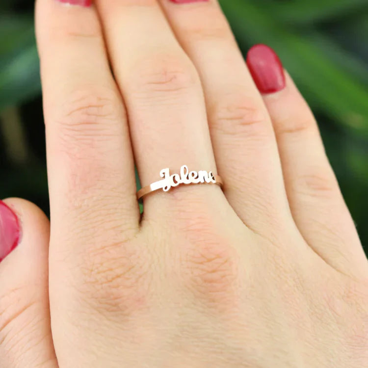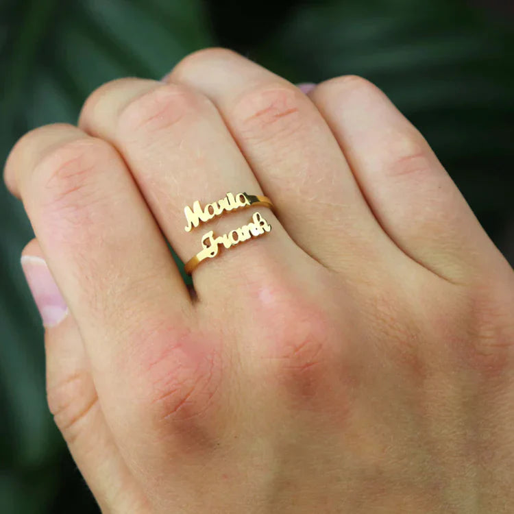 Dieser Namensring ist das perfekte Schmuckstück, um jemanden Besonderen zu ehren. Wähle die Namen deiner Liebsten, und wir fertigen daraus deinen ganz persönlichen Ring – einzigartig, individuell und verstellbar.